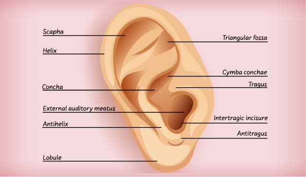 Pertama adalah bagian luar. Bagian ini terdiri dari pinna atau daun telinga yang terlihat pada sisi kepala dan saluran telinga.