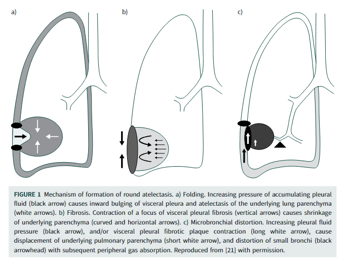 The term “asbestos” is used to refer to a group of silicate minerals that often break down into fibres and whose inhalation over time can cause a number of diseases, especially pleuropulmonary diseases. While the most serious complications are malignant diseases, inhalation of these fibres can also cause benign pleural diseases such as round atelectasis, pleural plaques, diffuse pleural thickening and non-malignant asbestos pleural effusion.