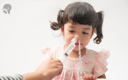 Selanjutnya isi dengan larutan infus natrium klorida (NaCL) yang bisa dibeli di Apotek. Jangan bilas hidung dengan air mentah atau air keran, karena belum tentu bebas kuman.