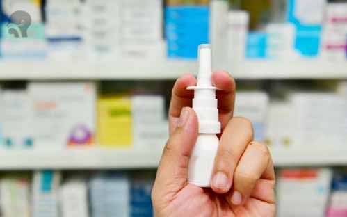 Posisikan kepala agak ke belakang. Tutup satu lubang hidung dengan jari lalu semprotkan obat ke dalam lubang hidung.