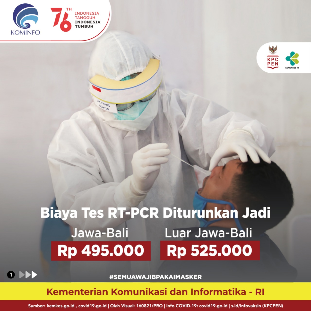Keputusan ini berdasarkan Surat Edaran Dirjen Pelayanan Kesehatan Nomor HK.02.02/I/2845/2021 tentang Batas Tarif Tertinggi Pemeriksaan RT-PCR. Selengkapnya dapat dibaca di https://covid19.go.id/p/regulasi.