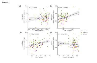 Individuals with COPD (n=43) recruited in Singapore had their residences prospectively sampled and assessed by shotgun metagenomic sequencing including indoor air, outdoor air, and touch surfaces (total: 126 specimens). The abundance of environmental A. fumigatus and the occurrence of A. fumigatus (Asp f) allergens in the environment were determined and immunological responses to A. fumigatus allergens determined in association with clinical outcomes including exacerbation frequency. Findings were validated in 12 individuals (31 specimens) with COPD in Vancouver, Canada, a climatically different region.