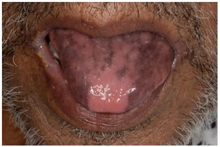 This patient was visibly cachectic and severely dehydrated with dry mucous membranes and reduced skin turgor. Figure 1 shows a feature noted on general examination.
