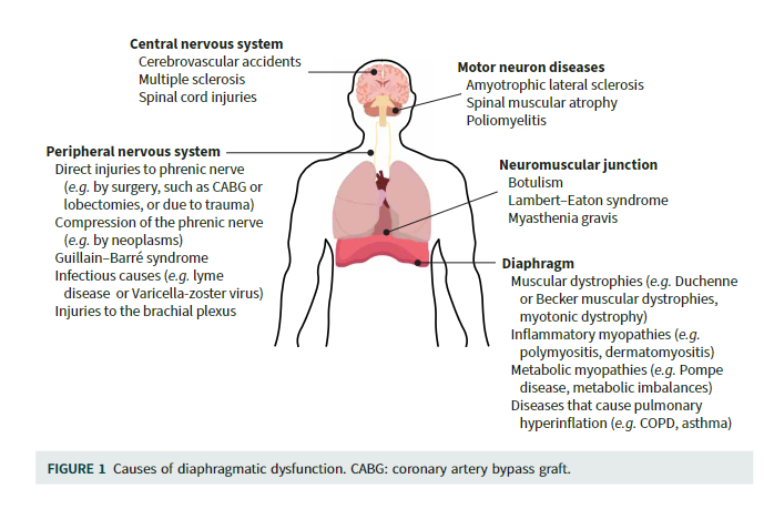 Treatment strategies depend on the underlying aetiology and severity, ranging from conservative management to interventions such as surgical plication or diaphragmatic pacing. Ventilatory support, particularly noninvasive ventilation, plays a pivotal role in treatment, enhancing lung function and patient outcomes across unilateral and bilateral dysfunction.