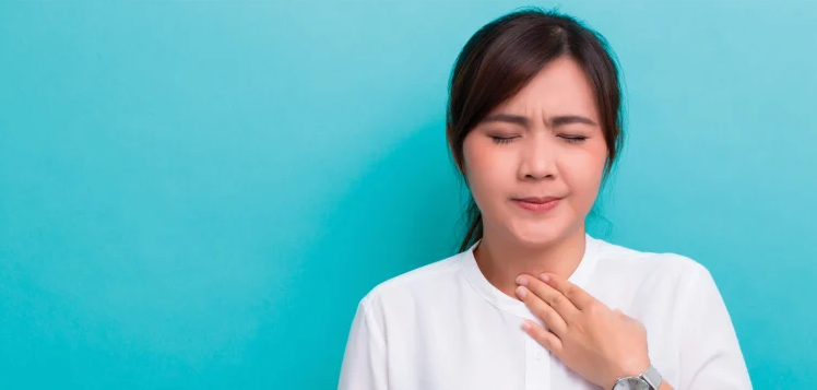 Kondisi ini biasanya disertai dengan gejala tenggorokan yang terasa kering, perih, dan gatal.