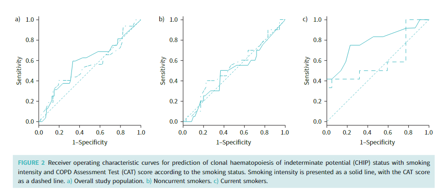 In patients with COPD, CHIP positivity was significantly associated with an increased risk of subsequent acute exacerbations, but not with longitudinal changes in lung function.